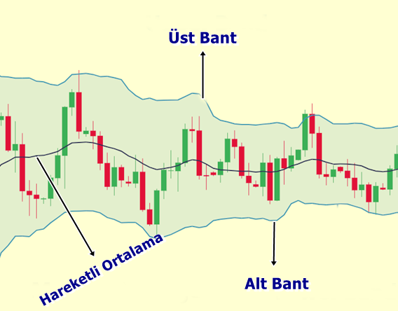 Bollinger Bandında hareketli ortalamanın standart sapması hesaplanır ve 3 tane çizgi elde edilir. Düşük volatilitenin yüksek volatiliteyi oluşturacağı, yüksek volatilitenin düşük volatiliteye yol açacağı ve bunun bir döngü olarak süreceği temeline dayanır.