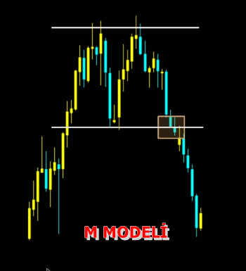 Tersine çevrilmiş şekliyle tahmin edebileceğiniz gibi, M modeli trendin tersine çevrilmesidir. Yükseliş trendi düşüş trendine dönüşür. Burada göreceğiniz şey, üst bandın yakınında veya hatta belki biraz daha üstünde olan ilk fiyat dalgasıdır. Ardından alt banda doğru ilerleyen bir geri çekiliş görülür. Bunu takiben, öncekinden yüksek olan ancak üst bandın sınırlarından kopmayan bir fiyatla geri yükselerek fiyat tekrar düşmeye başlar. Buradaki strateji, fiyatın en son görülen yüksek seviyesinde stop-loss vererek short yapmaktır.