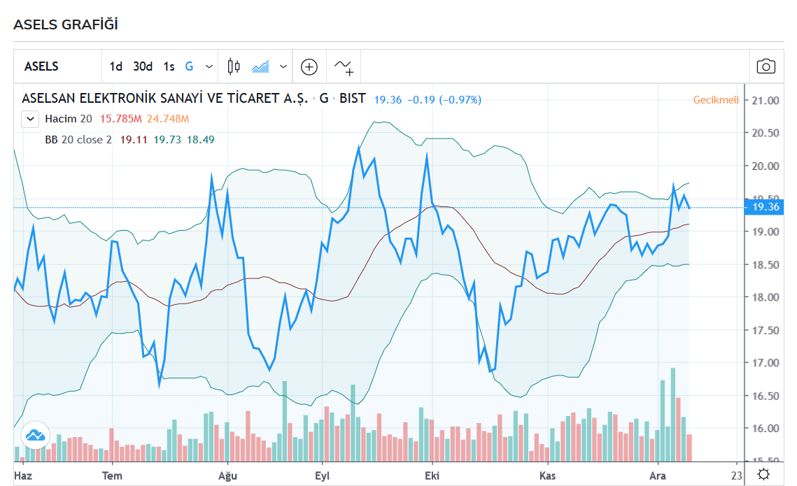 FinansCepte: ASELS hissesi - Bollinger Bant göstergesi