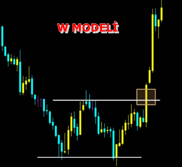 W modelinde, düşüş trendinin yükseliş trendine dönüştüğü görülür. Bu modeli tanımlamak için, SMA'nın alt banda yakın olduğu veya çok az daha altına hareket ettiği düşük bir fiyat arayın. Fakat fiyatın sonradan tekrar ortaya yaklaşması hatta belki daha da yükselmesi gerekiyor. Tekrar düşüşe geçtiğinde ise ilk düştüğü noktaya gelmez. Sonra tekrar yukarı doğru hareket eder.