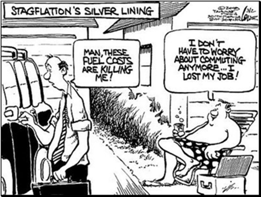 1974 yılında yaşanan petrol şoku birçok ülkede stagflasyon olgusunun ortaya çıkmasına yol açmıştır. Ekonomik krizlerin başa çıkılması zor olanlarından birisi budur. Eğer ekonomi enflasyon içinde büyümeye devam etse bir miktar büyümeden fedakarlık ederek enflasyonu düşürmek daha kolay olabilirdi. Oysa stagflasyonda bir yandan enflasyonla mücadele edecek bir yandan da ekonomiyi canlandıracak bir ekonomi politikası biçimlendirmek gerekir ki bu çok kolay bir iş değildir. Çünkü bu iki politika genelde birbiriyle çelişen politikalardır. Bu durumda iki hedefi de tutturamayacak bir politika arayışı içine girmektense bir seçim yaparak önceliği bu iki hedeften birisine vermek daha uygun olabilir.*