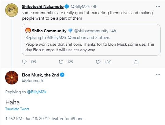 Bu açıklamaya yorum yapan eski Dogecoin geliştiricisi Billy Markus, Shiba'dan gelen açıklamanın SHIB token reklamı olduğunu belirtti. Elon Musk'ın cevabı "Haha" oldu.