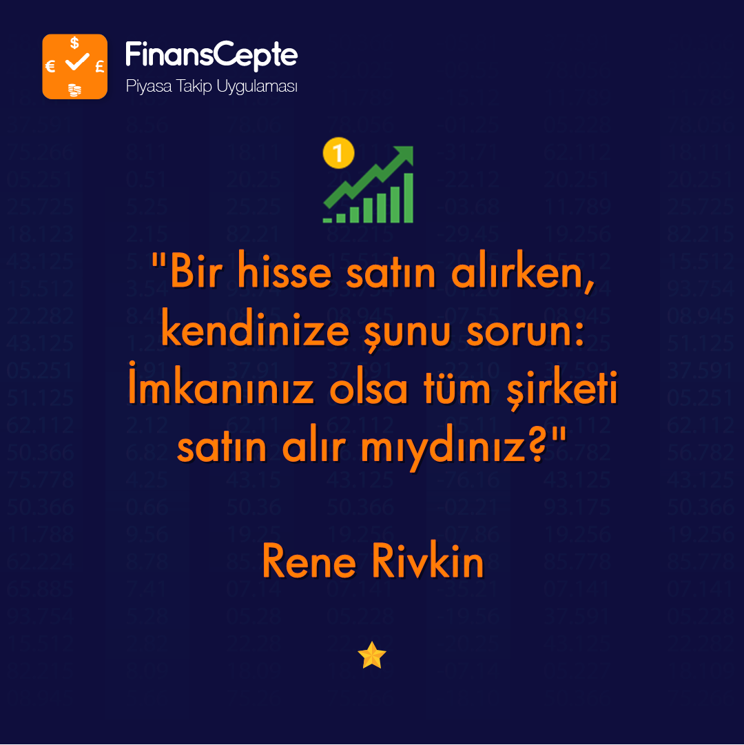 6.Bir hisse satın alırken, kendinize şunu sorun: İmkanınız olsa tüm şirketi satın alır mıydınız? - Rene Rivkin