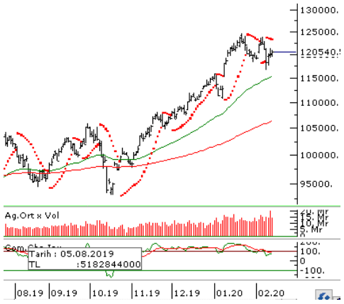 Endeksin pozitif devam etmesi durumunda takip edeceğimiz direnç seviyeleri 121.600 – 122.600 – 123.100 olacak. Kar satışlarının gelmesin de ise destek seviyeleri ise 119.100 – 119.600 – 118.500 olacak.